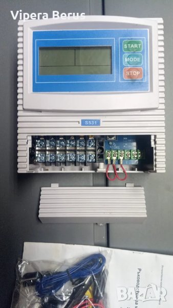 Контролно табло S 531. Автоматично електронно защитно табло за защита на трифазни помпи и електродвигатели с мощност от 0,75 kW, до 4,0 kW. Защита от сух ход, високо или ниско напрежение, претоварване, блокирала помпена част. Към таблото могат да се монтират датчици за ниво или ел. поплавък или механичен пресостат. Таблото е без забележки, ползвано е един сезон. Продава се поради закупуване на честотно управление. В комплект със сензорите за ниво и ръководство за експлоатация. Изпращам САМО с Еконт!