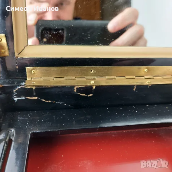 има следи от счупване под огледалото и винтчетата на пантите на огледалото не държат