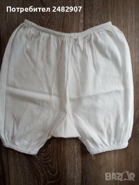 Нови бебешки гащи от времето на соца. Съдържат 100 % памук. Ширина в талията - 20 см, дължина от талията до долу - 31 см, ширина на крачола в долната част - 9 см.