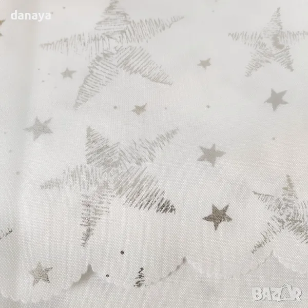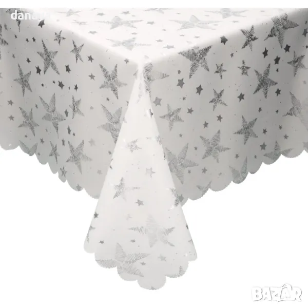 5289 Бяла коледна покривка за маса Сребърни звезди → Обява 47734197