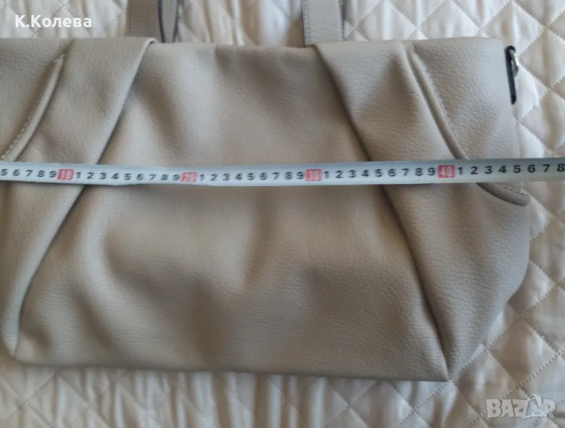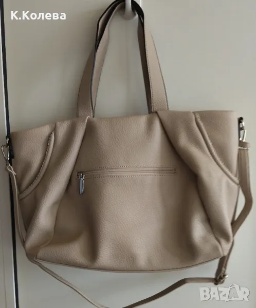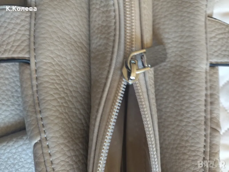 Нова кожена чанта с две къси дръжки и една дълга сваляема. Закопчаване с цип .