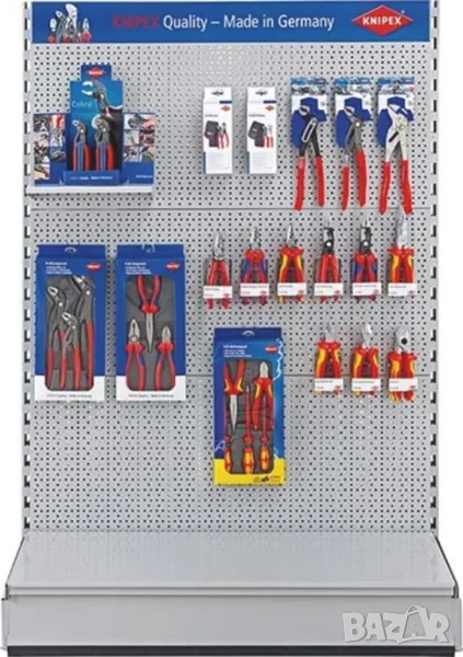 За окачване с куки шишове окачвачи и др.приспособления на клещи чирак грип и др., скоби за пружини втулки тампони шарнири лагери, гаечни ключове ключ звезда лула, чукове, щанги, тресчотка, гедоре камъни вложки на държач лента релса с щипки и др. - с универсално приложение за гараж, работилница и автосервиз, като търговско оборудване за склад, излагане на стоки в магазини, панаири и пазари, изложби и изложения, презентационни офиси и др.