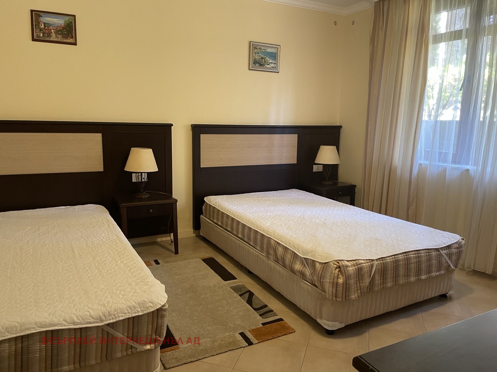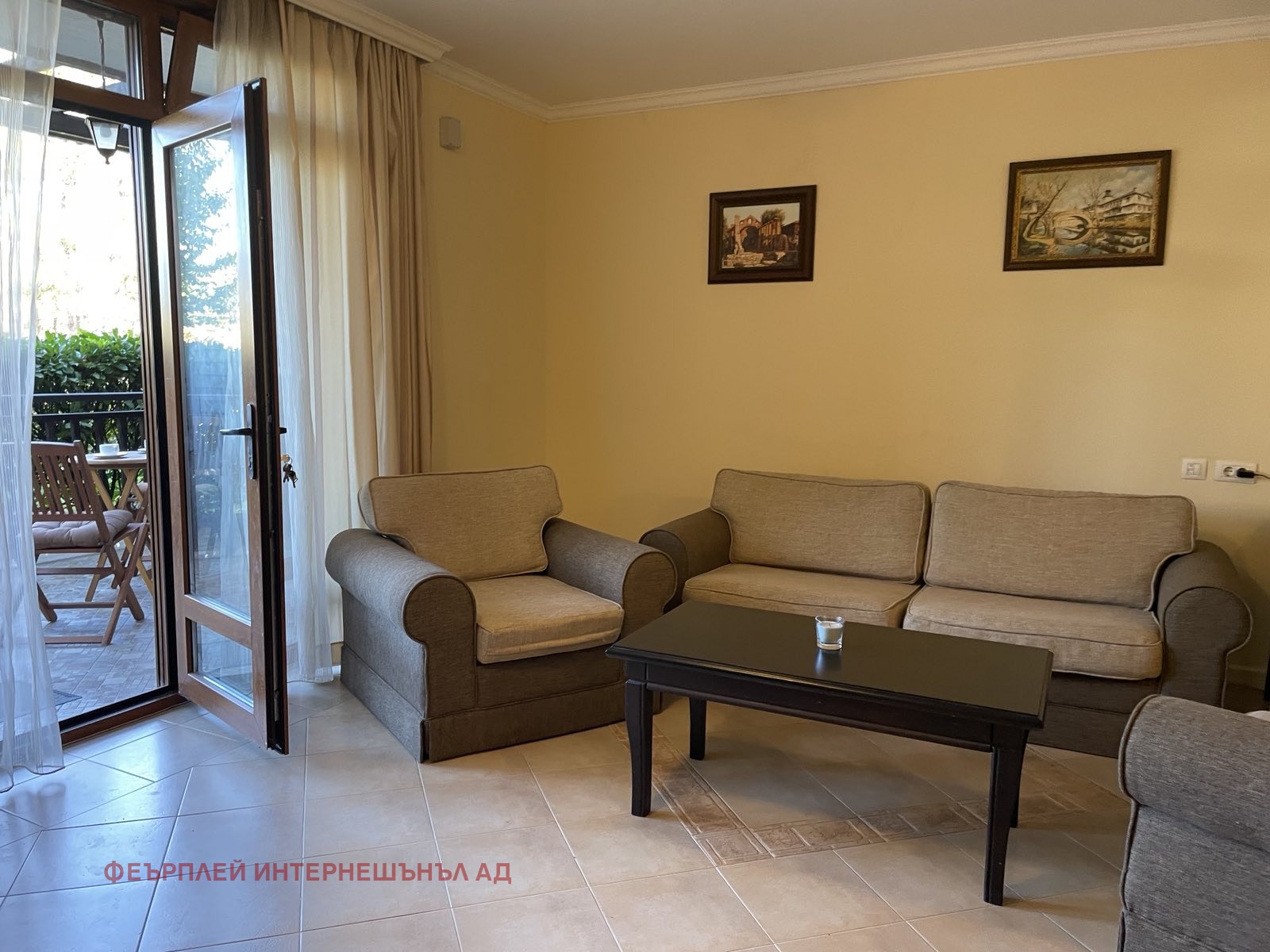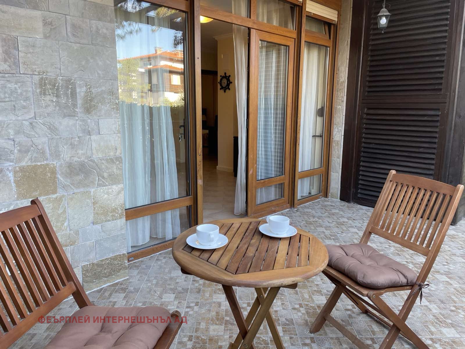 Препродажба в Санта Марина! Очарователен двуспален апартамент, разположен на първи етаж във вила 61.Имотът е в отлично състояние. Обзаведен е с много вкус като основно е акцентирано на практичността и фунционалността на мебелите. Дневната е изключително просторна, в нея са обособени две зони:зона кухня с трапезария и зона за почивка с мека мебел.Двете спални са уютни и комфортни.Терасата от 17,67 кв.м. гарантира уединение и приятна почивка и в най-жарките дни. Вторият вход през терасата дава усещане за собствен дом с градина. Напълно оборудвана баня с тоалетна. Затворен комплекс. Охрана. Видео наблюдение.Контрол на достъп. Такса поддръжка 2135 евро с ДДС.