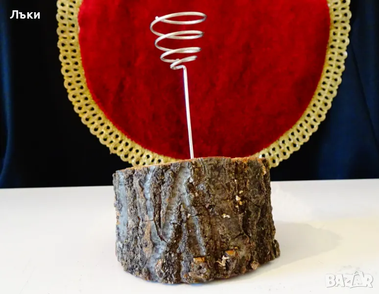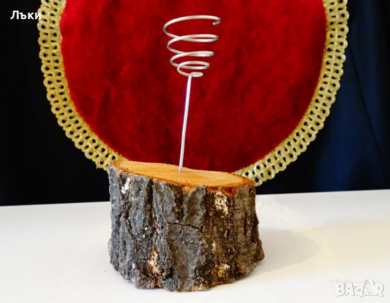 Тиландсия,въздушно цвете.Изработена от неръждаема стомана и естествено необработено дърво.Височина 13 см.,диаметър на основата 8 см.
