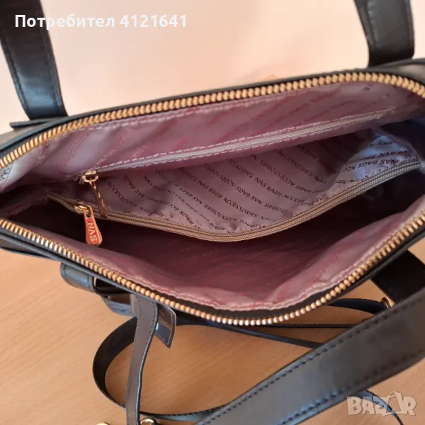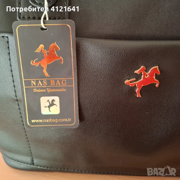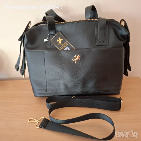 Нова чанта, еко кожа, Турция. Размери 33/25/14. Две дръжки, отделно дълга дръжка, 1 външен джоб с цип, 1 вътрешен джоб с цип, три отделения, едното с цип. Маркови висулки.