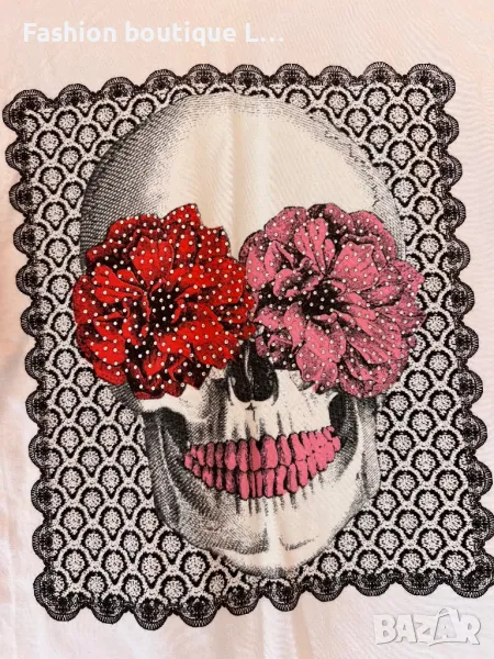 Нова бяла тениска с череп 95% памук М размер ❤️ → Обява 47737657