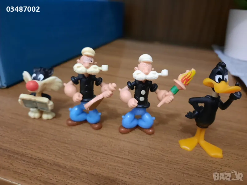 Четири фигурки от 90- те години на Киндер сюрприз. Две от серията Попай моряка и две от серията Loony tunes - Силвестър и Патока Дъфи .Четирите фигурки са на цена 24 лв.За отделни бройки по договаряне.