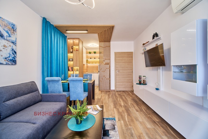 Апартаментът е луксозно обзаведен и напълно пригоден за нанасяне, предлагащ комфорт и стил. Просторните стаи са проектирани с внимание към детайла, а модерната кухня е оборудвана с всичко необходимо. Всеки детайл е внимателно подбран, за да създаде уютна и приветлива атмосфера.