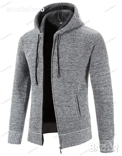 Ежедневно мъжко плетено яке с качулка и цип, 5цвята