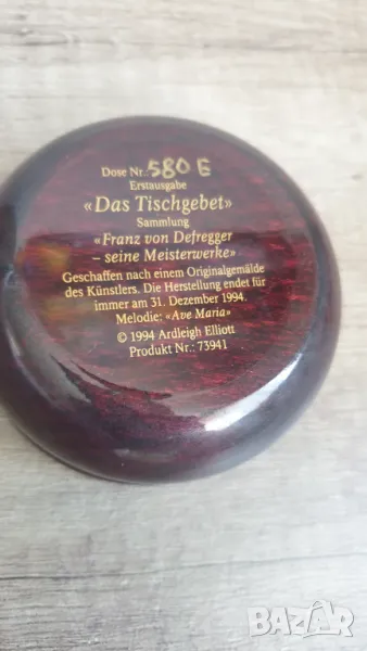 Продавам музикална кутия на Франц фон Дефрегер, мотив "Трапезната молитва", първо издание на колекцията "Франц фон Дефрегер - неговите шедьоври", ограничено издание, мелодия "Аве Мария" по Й. С. Бах, размери височина 4 см, диаметър 7,8 см, нова и напълно работеща.