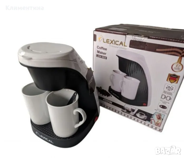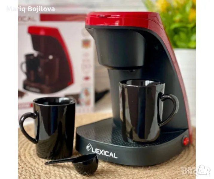 Мощност: 450 W, осигуряваща бързо и ефективно приготвяне на кафе. Материал на корпуса. Висококачествена пластмаса, устойчива на топлина и износване; Филтър. Подвижен, лесен за почистване и поддръжка. Едновременно приготвяне. Възможност за приготвяне на две чаши кафе едновременно. Превключвател със светлинен индикатор: Да, за лесна и интуитивна работа. Безопасност, Защита от прегряване, която осигурява безопасност по време на работа и удължава живота на уреда. Цвят: Бял, червен. 24 месеца гаранция.