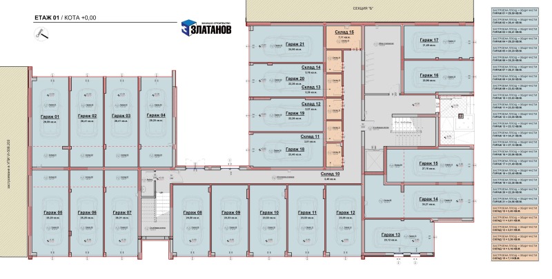 Сградата разполага с двустайни, тристайни, четиристайни апартаменти и гаражи с прекрасно разпределение и просторни стаи.