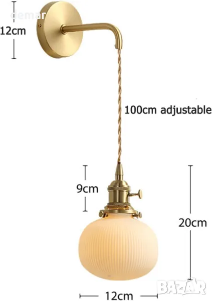 Този продуктов пакет включва комплект от керамичен абажур, държач за лампа, регулируем 100 см златен усукан чифт кабел и месингово гнездо за ключ за ВКЛ./ИЗКЛ. Абажур (120*120*200мм), с разстояние 230мм от стената. Побира крушки E27 (не са включени) и е съвместим с димируеми ключове и крушки. Работейки на 210-250 V, тази лампа е лесна за инсталиране и е идеална за различни настройки, включително всекидневни, спални, коридори, стълбища, офиси и барове.