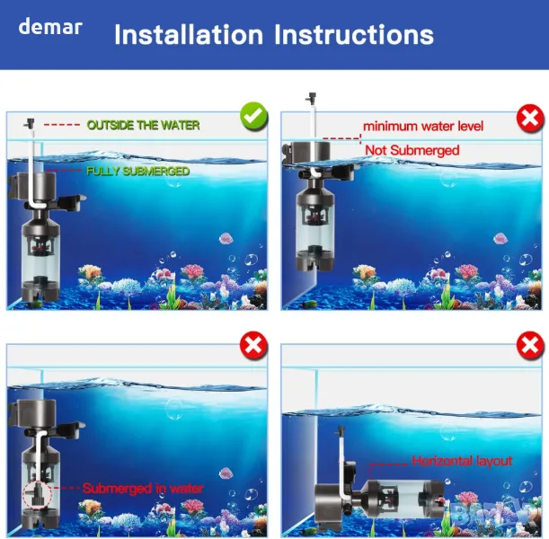 Този потопяем филтър за аквариум подобрява циркулацията на водата и нивата на кислород, насърчавайки здравословния растеж на водните домашни любимци както в прясна, така и в солена вода. С мощен дебит от 2500 L/H, той ефективно премахва рибните отпадъци и остатъците от храна, намалявайки замърсяването на водата и насърчавайки полезните микроорганизми. Неговата вендуза с висока адхезия позволява лесно закрепване, без да надраска аквариума, докато филтърният памук за многократна употреба може да се почиства редовно. Проектиран за тиха работа, ултра тихият мотор и вътрешната помпа минимизират шума и предотвратяват течове, предлагайки надеждно решение за филтриране за различни видове аквариуми.