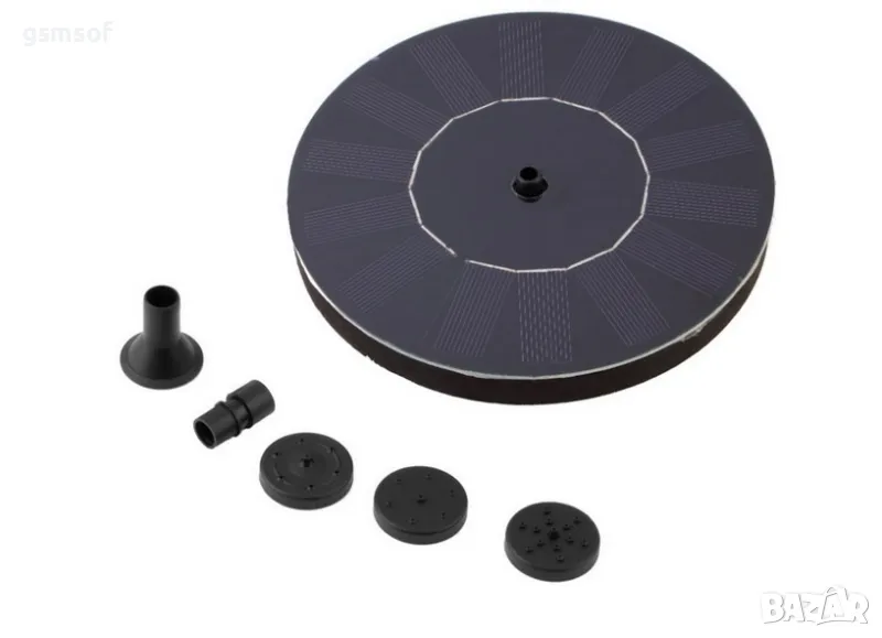 Комплект: соларен фонтан, 4бр разпръсквачи, инструкции за експлоатация.