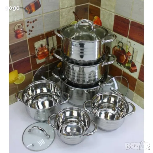 Комплект от 12 части тенджери с тройно дъно, високо немско качество