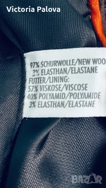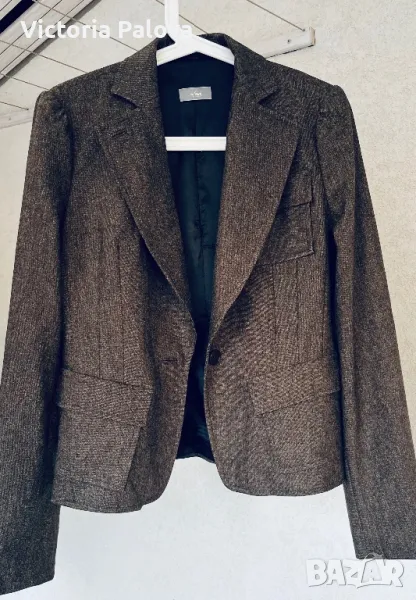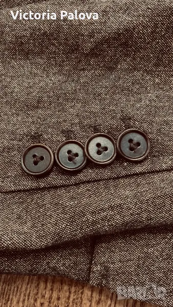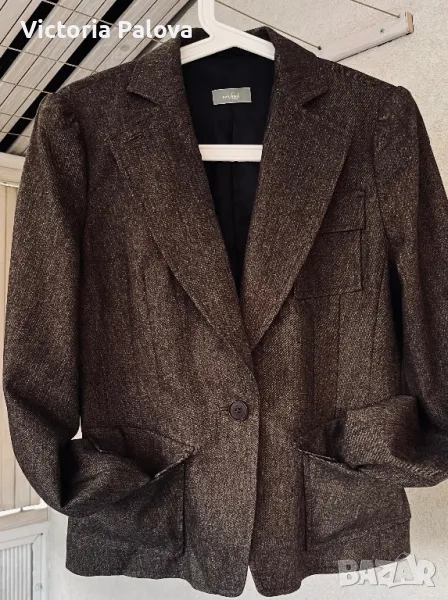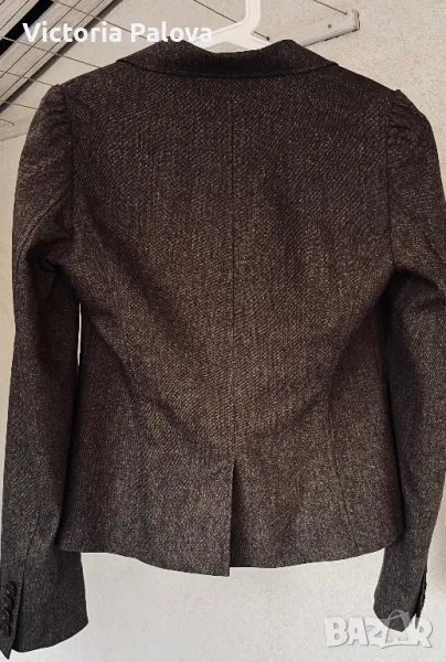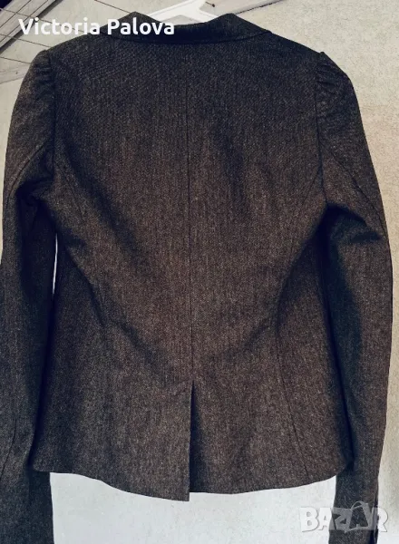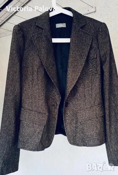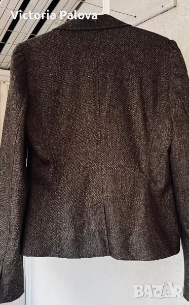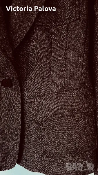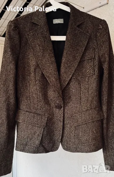 Ненадминато качество и стил във всеки детайл, нежна гладка вълна , прекрасен актуален цвят, закопчаването е с едно копче ( всички копчета са с три дупчици - знакът на марката), шлиц отзад - 12,5 см. Рамо - 40см, ГО - 48см, талия - 41см, дължина - 59см, ръкав - 64см. Сакото струва реално 500 евро.