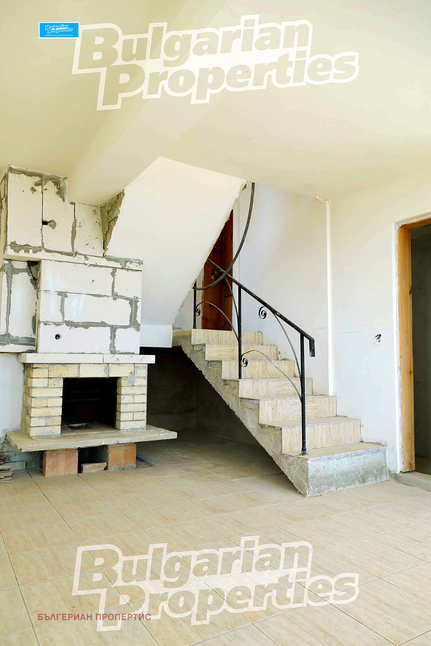 На втория етаж всекидневна - холна част с камина, тоалетна, склад с перално помещение.