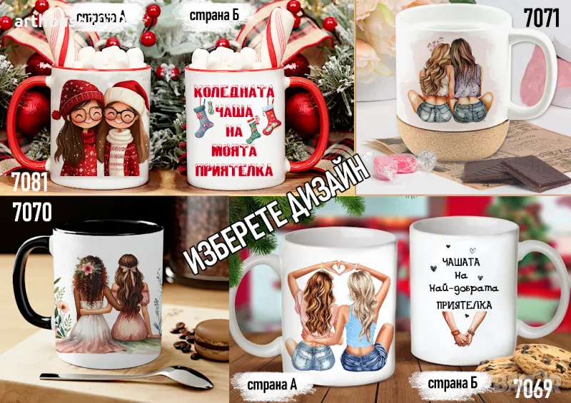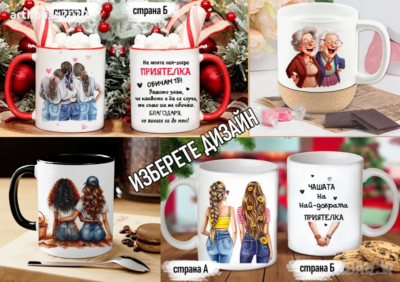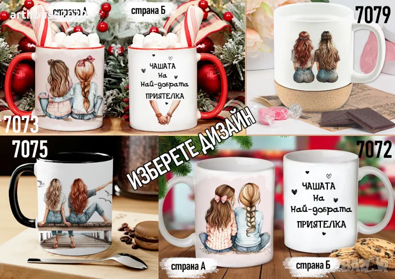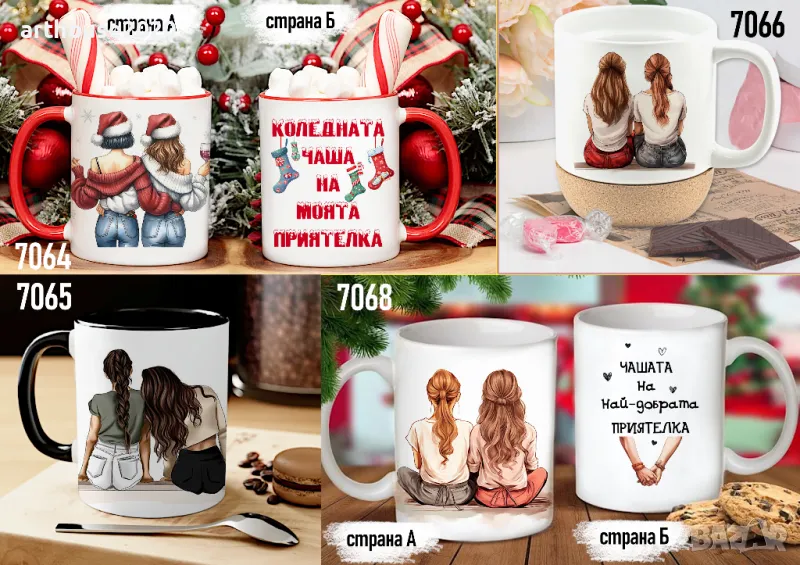 Чаши за приятели-персонализиран подарък за Коледа,рожден ден,всеки ден