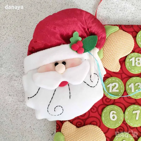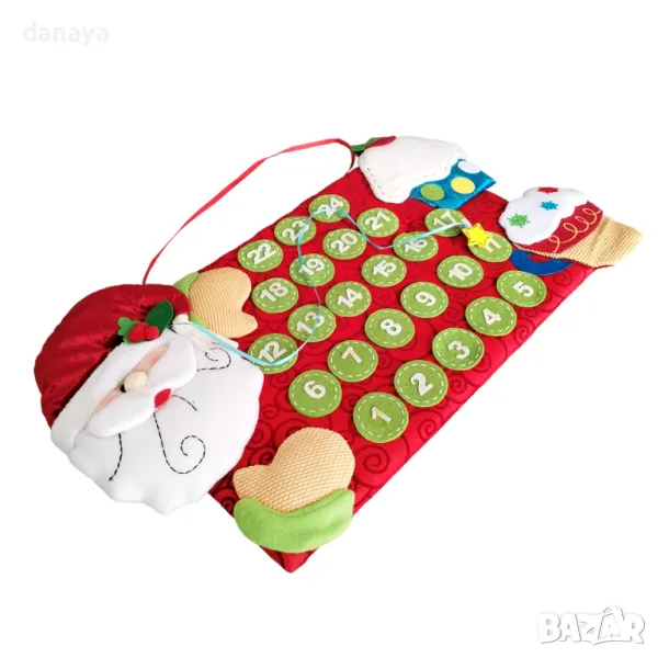 коледен календар с щипка за отбелязване на всяка дата от Декември месец до навечерието на Коледа. Голям Коледен Текстилен Календар с 3D Декорации 🎅🎄