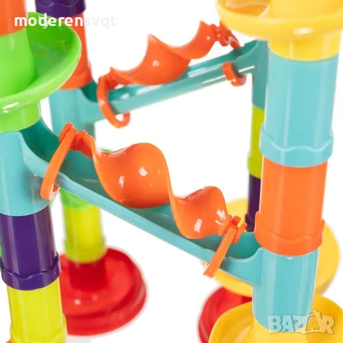 Конструктор за топчета е спираловидна писта, която осигурява безкрайно забавление. Този цветен комплект се състои от много различни цветни елементи, които децата може лесно да подрежда и свободно да комбинира в красиви писти. Освен това на гърба на опаковката има ръководство с пример за писта с всички елементи. Пуснете топчетата и ги гледайте как се търкалят едно след друго. Комплектът съдържа не по-малко от 150 елемента, включително, например, изстрелвачка и топчета за пистата. Размерът е подходящ за малки ръце и помага за развитието на координацията око-ръка.
