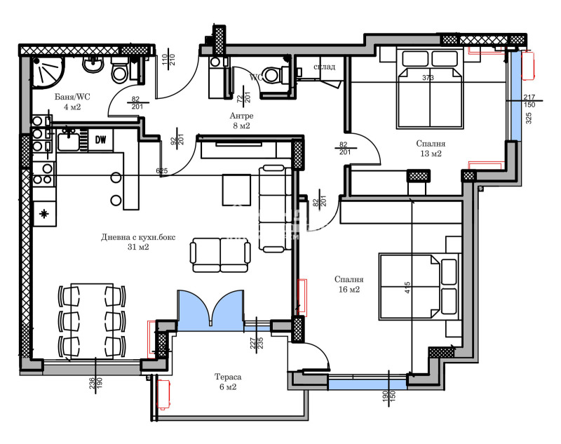 Оферта 65634: Предлагаме ви тристаен апартамент в новоизграждаща се модерна сграда с чудесна локация в близост до гребна база. Жилището, което ви предлагаме се състои се от южна дневна 31кв.м. с излаз на обща тераса, разделена на кътове: хол с мека мебел, трапезария и кухненски бокс, две самостоятелни спални: детска 13м2 и родителска 16кв.м., баня с тоалетна, втора тоалетна, килер с опция за гардероб и входно антре. Кооперацията се строи от реномирана фирма с множество готови сгради в града. Жилищата се отвършват според всички изисквания за качествено строителство с луксозни общи части: хидравличен асансьор, масивни Блиндирани входни врати, шест камерна PVC дограма, Австрийски червени тухли Винербергер - Porotherm. Приложените снимки в галерия са от друга готова сграда на строителната компания, за да придобиете представа за качеството и нивото на издаване на апартаментите. Свободни външни и подземни паркоместа, както и партерни и подземни гаражи. Възможност за разсрочено плащане в рамките на строителството или закупуване чрез Банков Кредит.ВИЖТЕ ОЩЕ ИЗГОДНИ ОФЕРТИ НА https://www.kondorimoti.com/ С ЕЖЕДНЕВНА АКТУАЛИЗАЦИЯ!