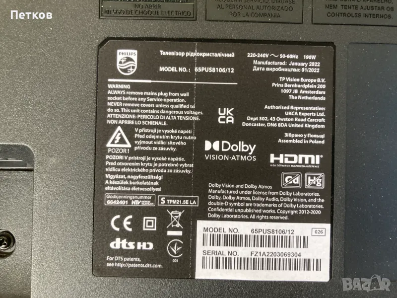 Работещи платки от телевизор с дефектен дисплей.