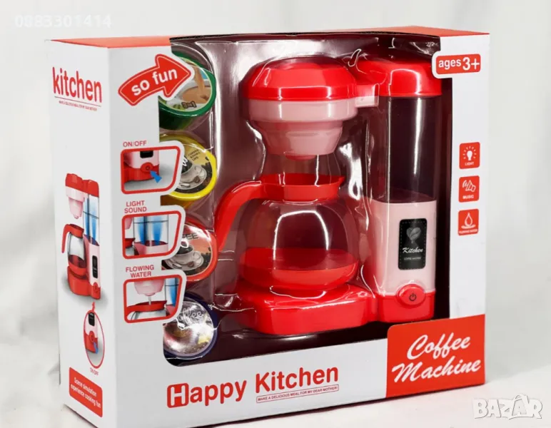 Кафеварка с атрактивен и реалистичен дизайн, ярки цветове, звукови и светлинни ефекти.