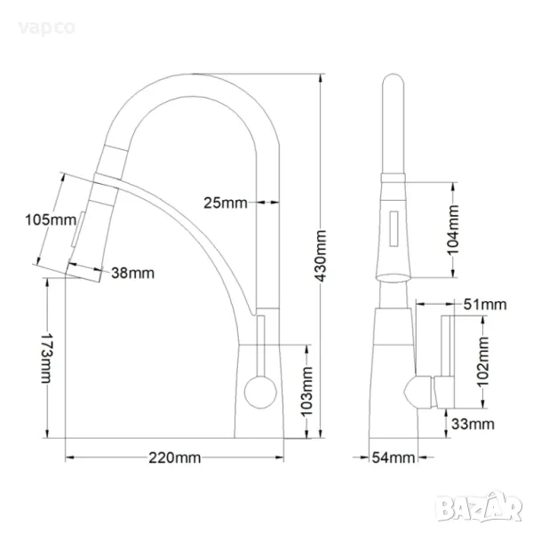 Модерен смесител за кухненска мивка W102 → Обява 47750787