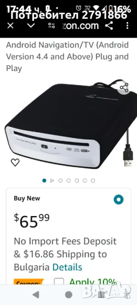 Външен CD,DVD плейър за кола USB за Android навигация-Plug and Play Android версия 4.4 и по-новa