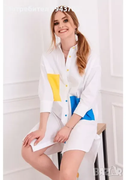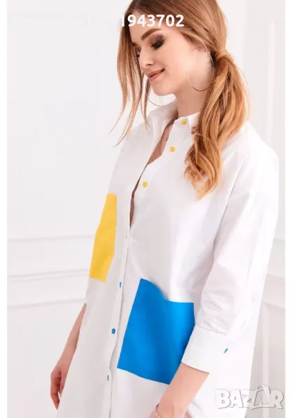 Дамска дълга риза в бял цвят, модел FG503.