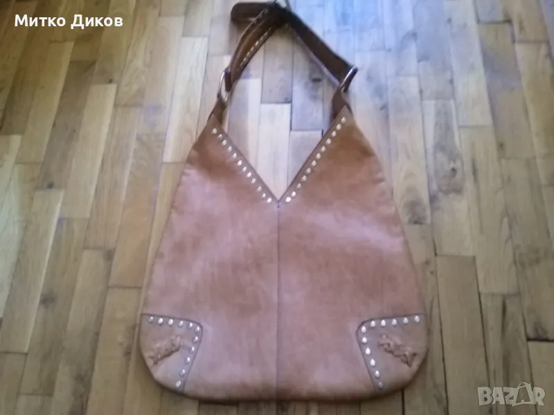 Светло кафява чанта като М естествена кожа 38х27см → Обява 47752362