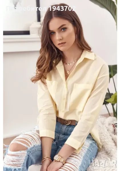 Дамска риза с дълъг ръкав в жълт цвят, модел MP25901.