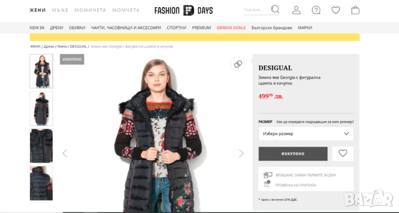 Липсва косматата яка на качулката Цена по магаизните около 500 лева