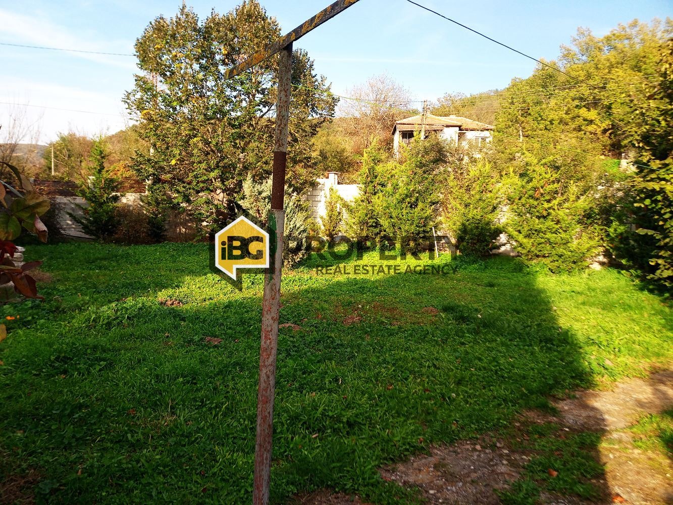 Двор с правилна форма - добре поддържан и красиво озеленен, капково напояване, кладенец, масивна висока ограда. Перфектен достъп, лесна локация.