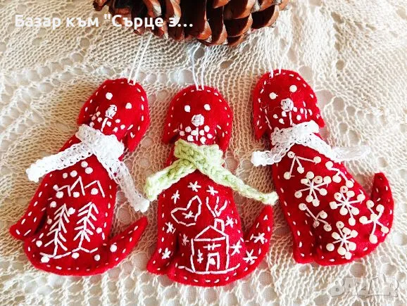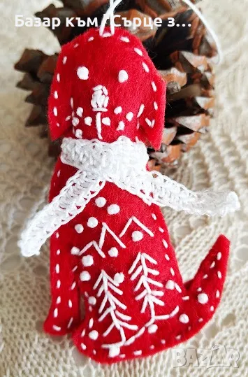 Снимка 4 Коледно куче с плетено шалче! Ръчна бродерия върху филц - 15 лв; 8,5 см