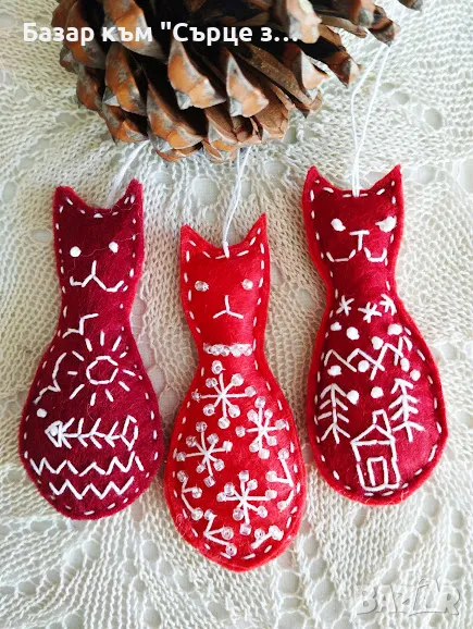 Снимка 2 Зимни и летни котки с мисия да помагат на бездомните животни Ръчна бродерия върху филц - 15 лв/бр; 39 лв за комплекта; 9 см.