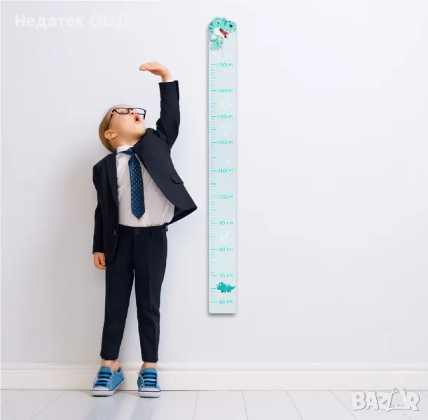 Дървена стойка с модел на динозавър. Поставете детския ръстомер (ръстомер - ролетка) на стената или на друго място, където желаете, за неговата метална кука и наблюдавайте растежа на ръста на вашето дете по забавен начин.