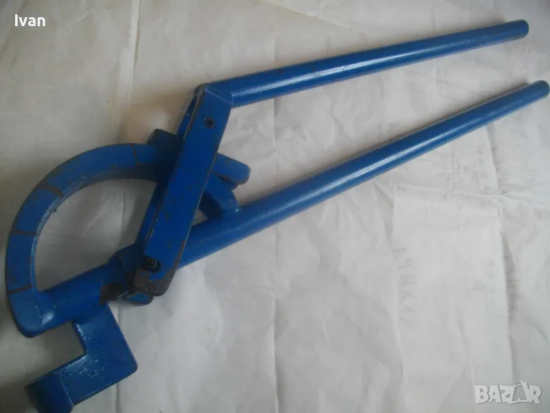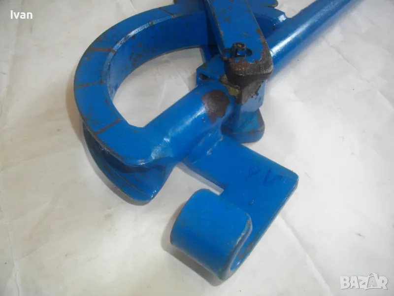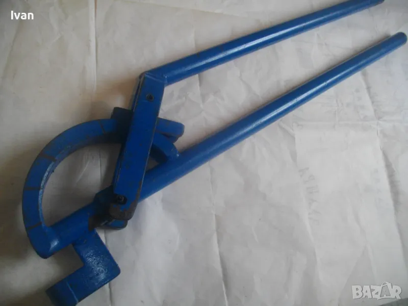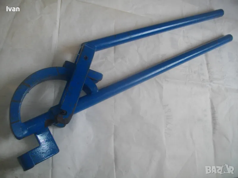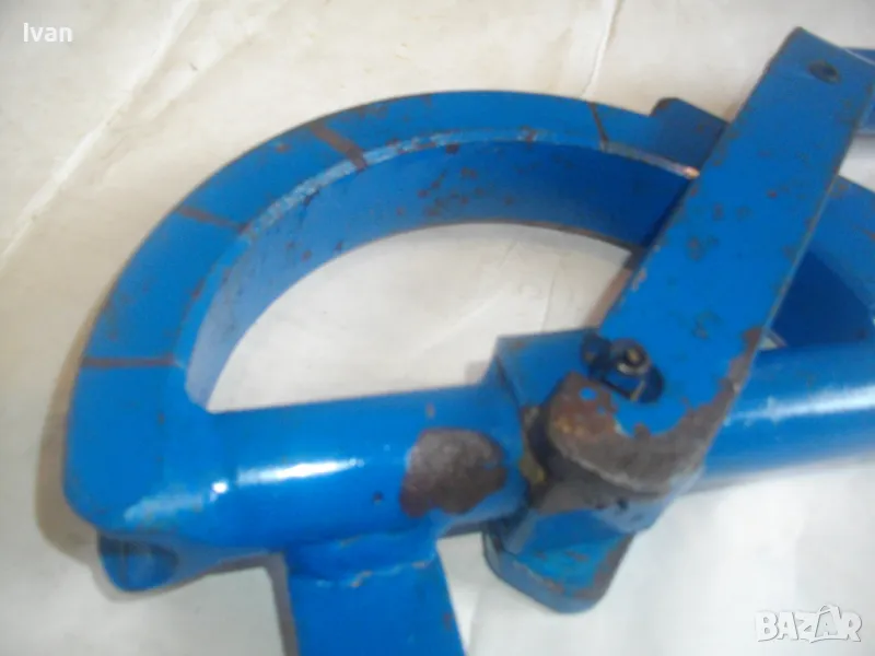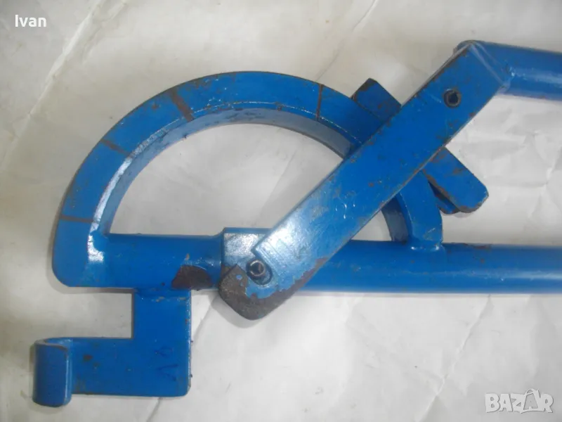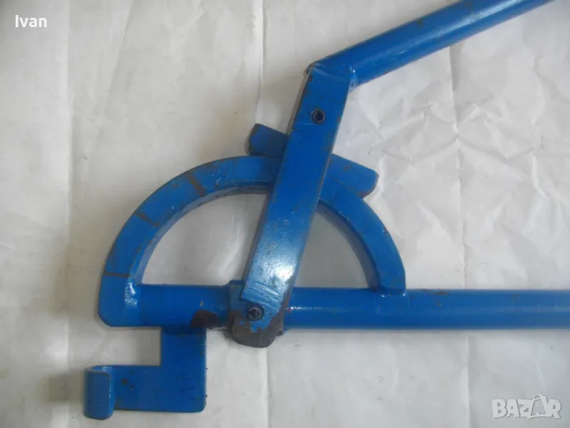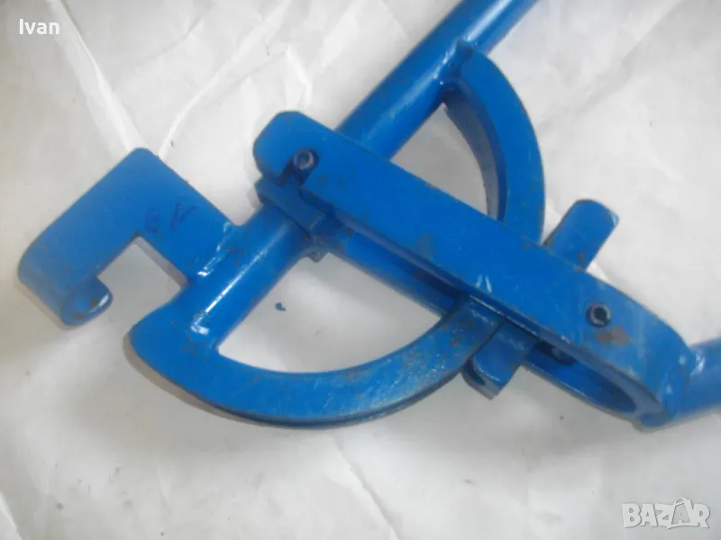 Тръбогиб размер огъване 22 мм син - цена 359 лв. Масивен старо качество ръчен уред за огъване на всякакви тръби, включитено и метални дебелостенни. Немски, почти нов, отлично работно състояние. Дължина 84 см, тегло 5,0 кг, дръжки тръби размер ф 30 мм, разглобяем на 2 части, масивна желязна глава. Радиус огъване 80-90 мм.