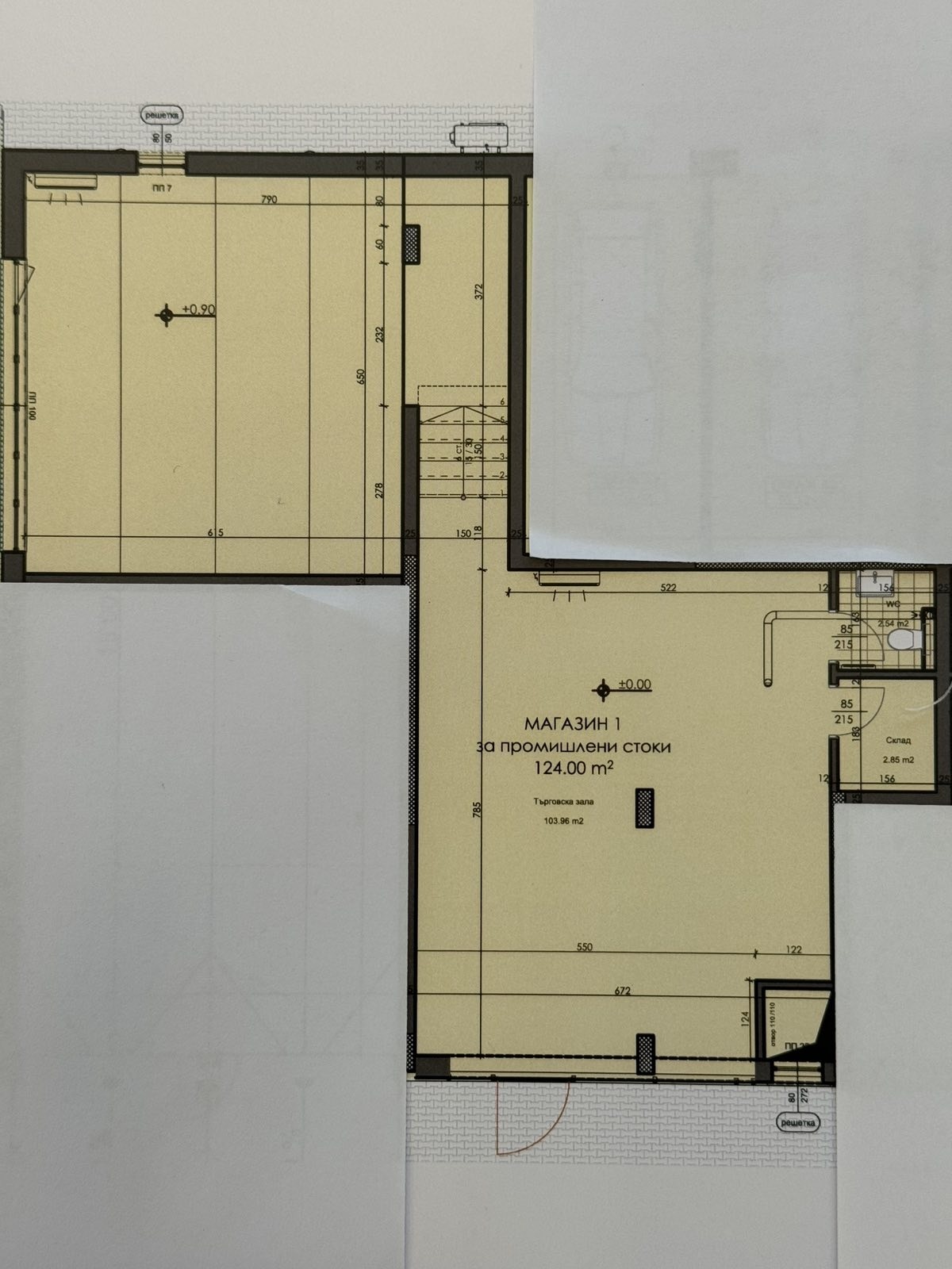 Предлагаме магазин, състоящ се от търговска зала, склад и тоалетна.