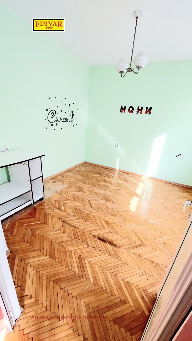 ПЕРФЕКТНА ЛОКАЦИЯ-кино ДОБРИЧ!!!ЕДИВАР предлага чудесен , просторен апартамент с чиста жилищна площ 84кв.м. Състои се от Г- коридор, голям хол с излаз на тераса, кухня с излаз на тераса, две спални, баня с тоалет, таванска стая без скосове- коридор с вграден гардероб, ниша с мивка и шкафове, излаз на тераса, електромер, две избени помещения с обща площ 12кв.м., ПВЦ дограма, естествен паркет, изложение югозапад, топло, слънчево жилище с отлична локация. ЕДИВАР ОСИГУРЯВА ФИНАНСИРАНЕ ЧРЕЗ СЪДЕЙСТВИЕ ЗА КРЕДИТИ. ПАРТНЬОРСКИ ДОГОВОРИ С ВОДЕЩИ БАНКИ. КОНСУЛТАНТ: СТОЯН ЕДИСОНОВ, Моб/Viber/WhatsApp- 0887070266; 0888143204. КУПИ- ПРОДАЙ ИМОТ ЧРЕЗ ЕДИВАР!