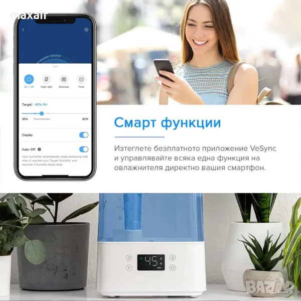 всяка една функция на овлажнителя директно вашия смартфон. Също така