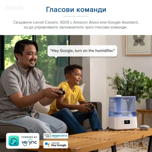 може да използвайте и гласови команди, като свържете Levoit Cassinc 300S