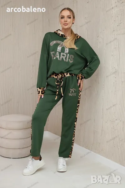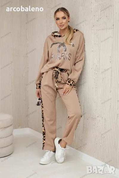 Дамски комплект от две части суичър комплект Paris + панталон, 6цвята