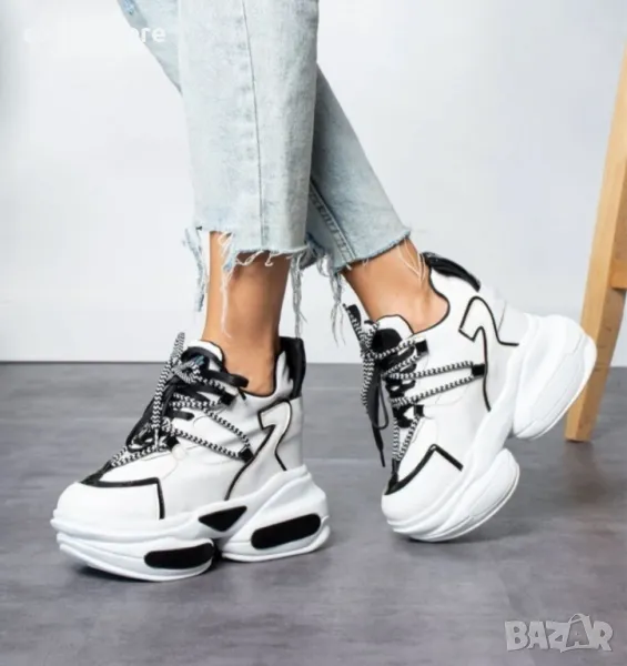 Кецове на платформа - бяло с черно - PA400 → Обява 47759009