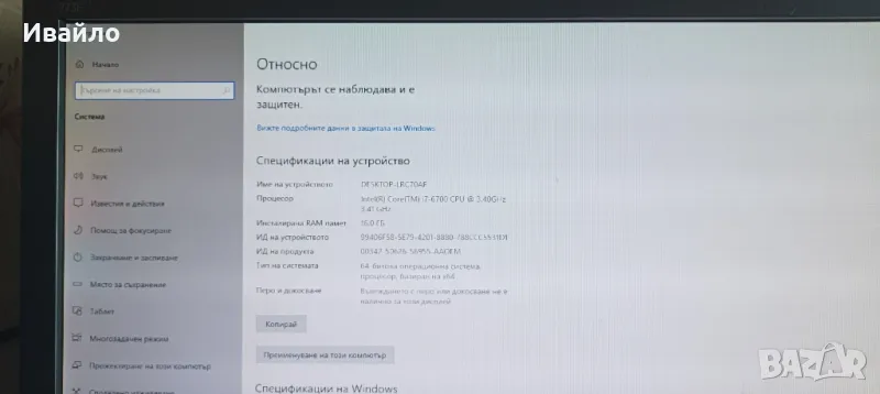 Геймърски Компютър /I7 6700/16GB RAM/SSD-512 SAMSUNG/RX580 8GB → Обява 47759277