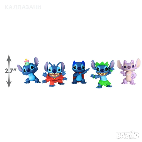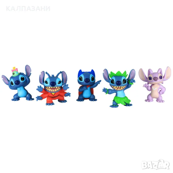 Пренеси у дома приключенията на Лило и Стич от Дисни с колекционерския комплект фигурки Стич! Този изключително детайлен комплект фигурки от пет части включва Стич (в четири различни тоалета) и Ейнджъл. Всяка фигура е висока около 7.5 см. и идва в забавна, изразителна поза. Направи си Стич колекция със Superhero Stitch, Stitch & Scrump, Alien Stitch, Hula Stitch и Angel.