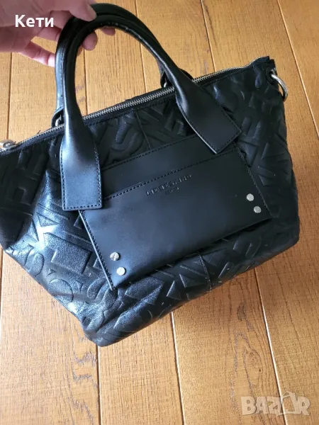 Черна щампована Чанта Liebeskind , съвременна, спортно елегантна, естествена кожа, изключително запазена, липсва й дългата дръжка и има леко обелване от долу показано на снимка. Предно плоско джобче. И запазена от вътре - 70лв.