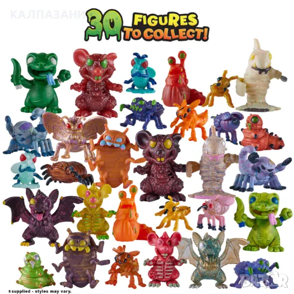 Над 30 фигурки за събиране, включително редки неонови и супер редки металик фигурки.