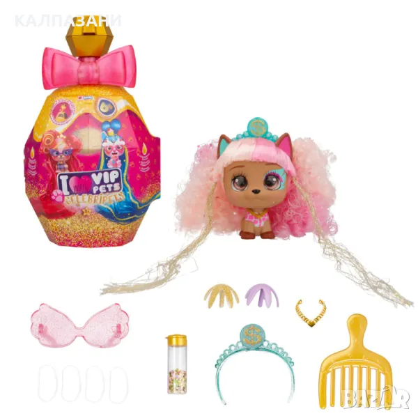 Запознай се с VIP PETS - най-модерните кученца с най-дългите коси и множество аксесоари! Това, което ги свързва, е страстта им към прическите! Тези страхотни кученца са със супер дълга коса за стилизиране и 6 аксесоара. Те обичат да са с различни прически за всеки повод и се нуждаят от твоята помощ, за да придобият перфектен външен вид.